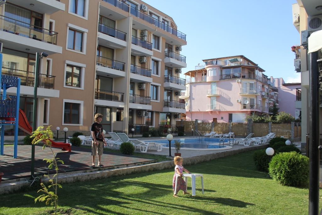 Двустаен апартамент за нощувки в комплекс с басейн в Равда